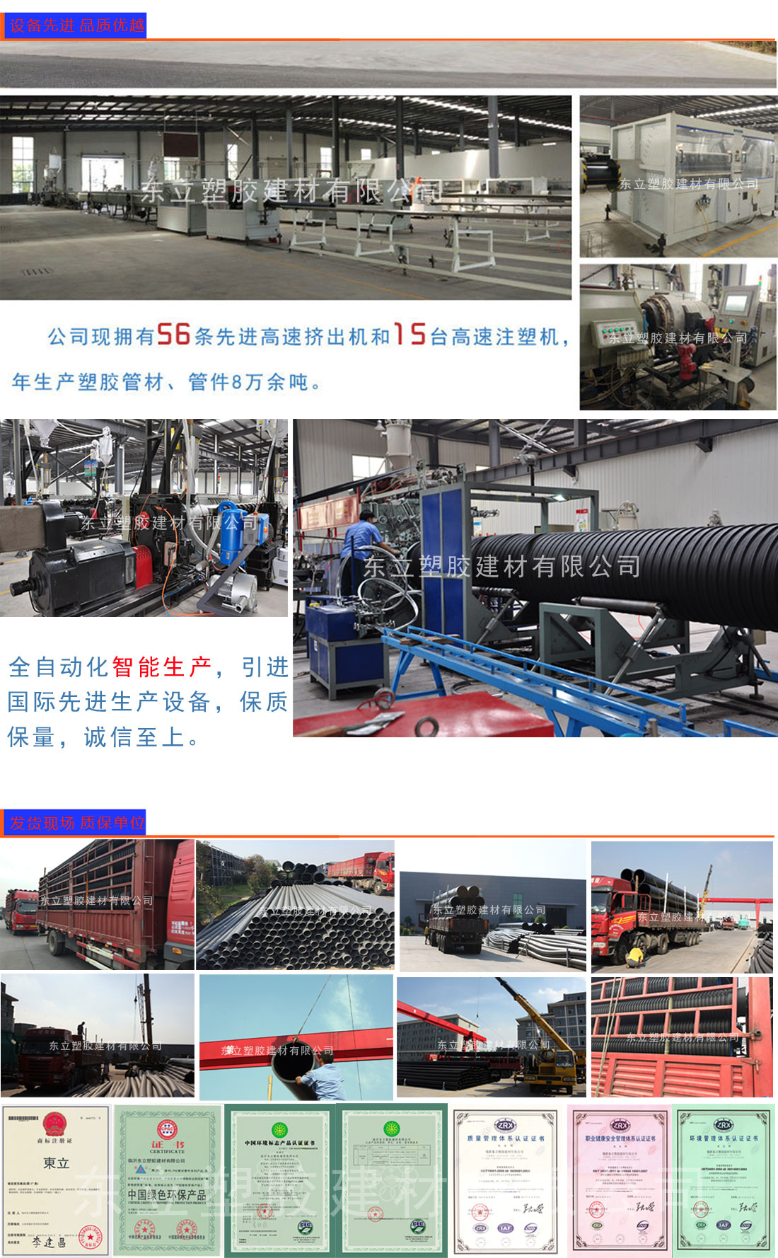 PE管采用目前世界上最先進(jìn)的技術(shù)生產(chǎn)制造的,具有高速擠出成型,熔融適度,自動(dòng)定尺切割,PLC控制生產(chǎn)全過(guò)程的先進(jìn)性能。